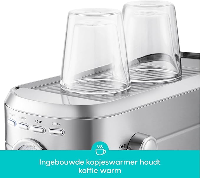 Daarnaast beschikt de machine over een drukmeter, zodat je meer controle hebt over het zetproces. Dit maakt het een interessante keuze voor mensen die iets meer willen leren over koffiezetten, zonder dat het te ingewikkeld wordt.